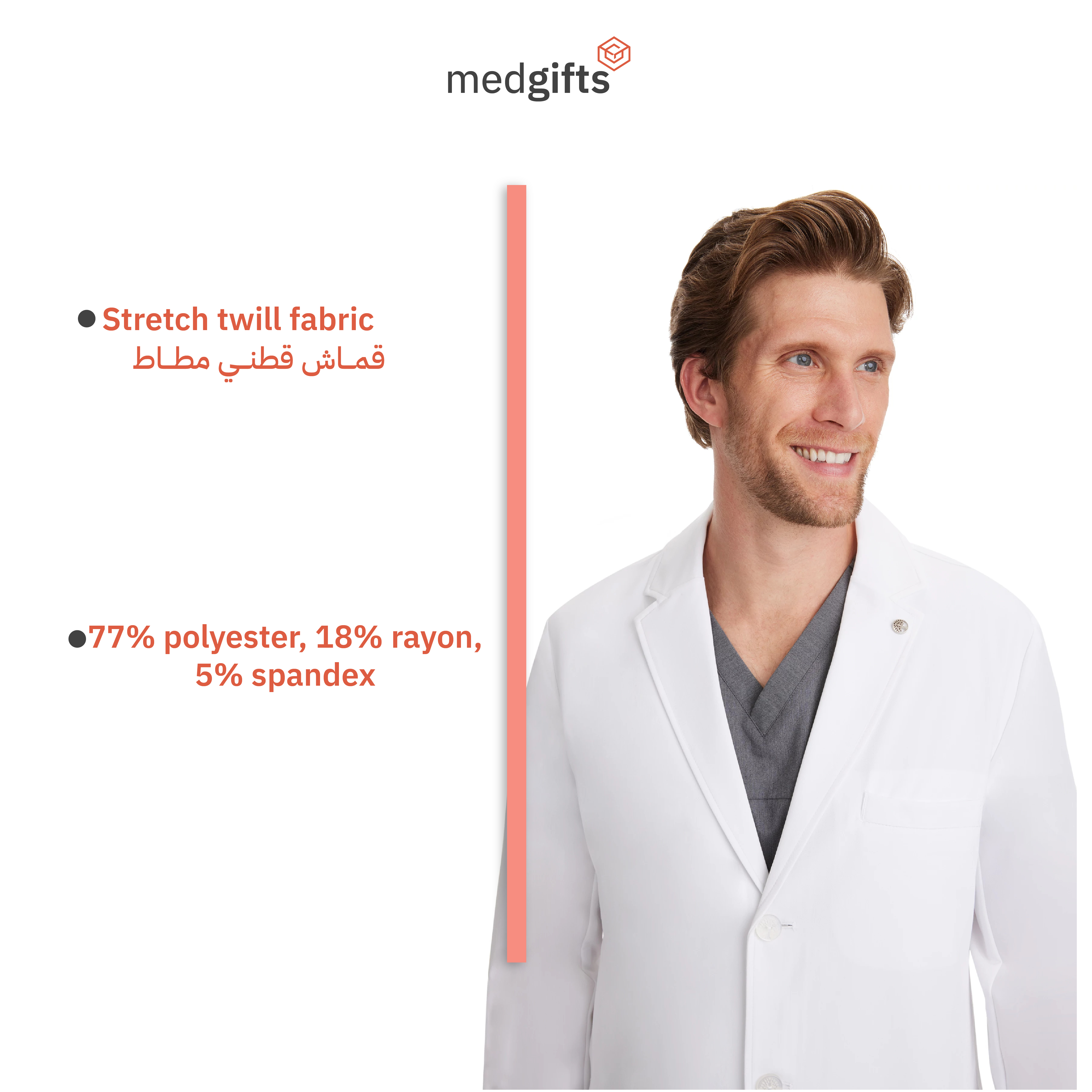 Show off your professionalism with the elegantly designed Lab Coats by Healing Hands Men’s Luke 38″ Lab Coat. This streamlined look includes side access slits, plenty of organizational pockets and a message from Healing Hands’ founder: The world is in your healing hands.